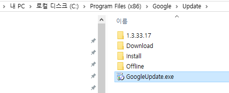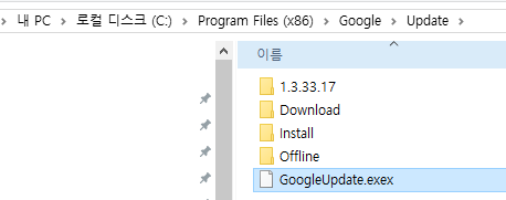경로는 시스템마다 다르겠지만 내 경우에는 C:\Program Files (x86)\Google\Update에 있다.