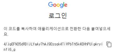 원래는 로그인 후 아래의 코드를 붙여넣으라는 화면 없이 바로 연동되어야 정상인데 아래와 같이 코드를 붙여 넣으라는 메시지가 나오고 연동은 안된다.