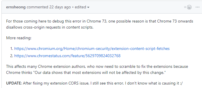 요약하자면 크롬73 버전부터 교차스크립트를 허용하지 않는다는? 이런 내용이다.