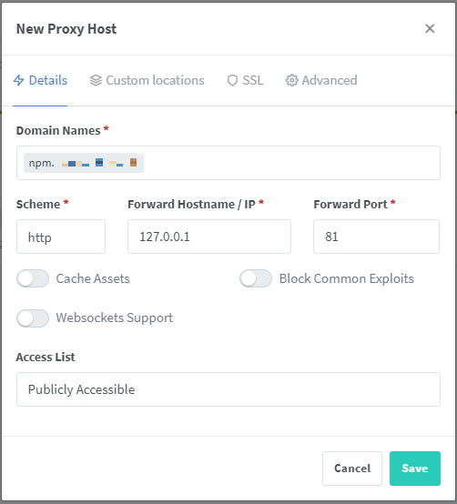 nginx-proxy-manager 관리페이지의 경우 원래 http://서버아이피:81 로 접속해야 했으나 아래와 같이 설정할 경우 http://입력한_도메인 주소로 접속이 가능하게 된다.